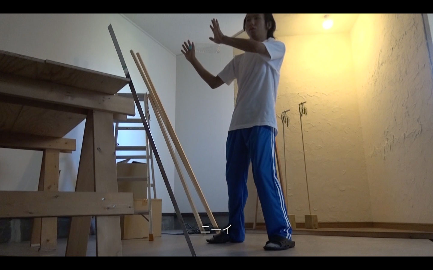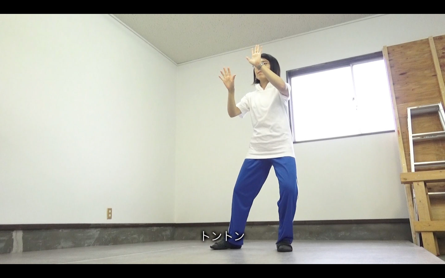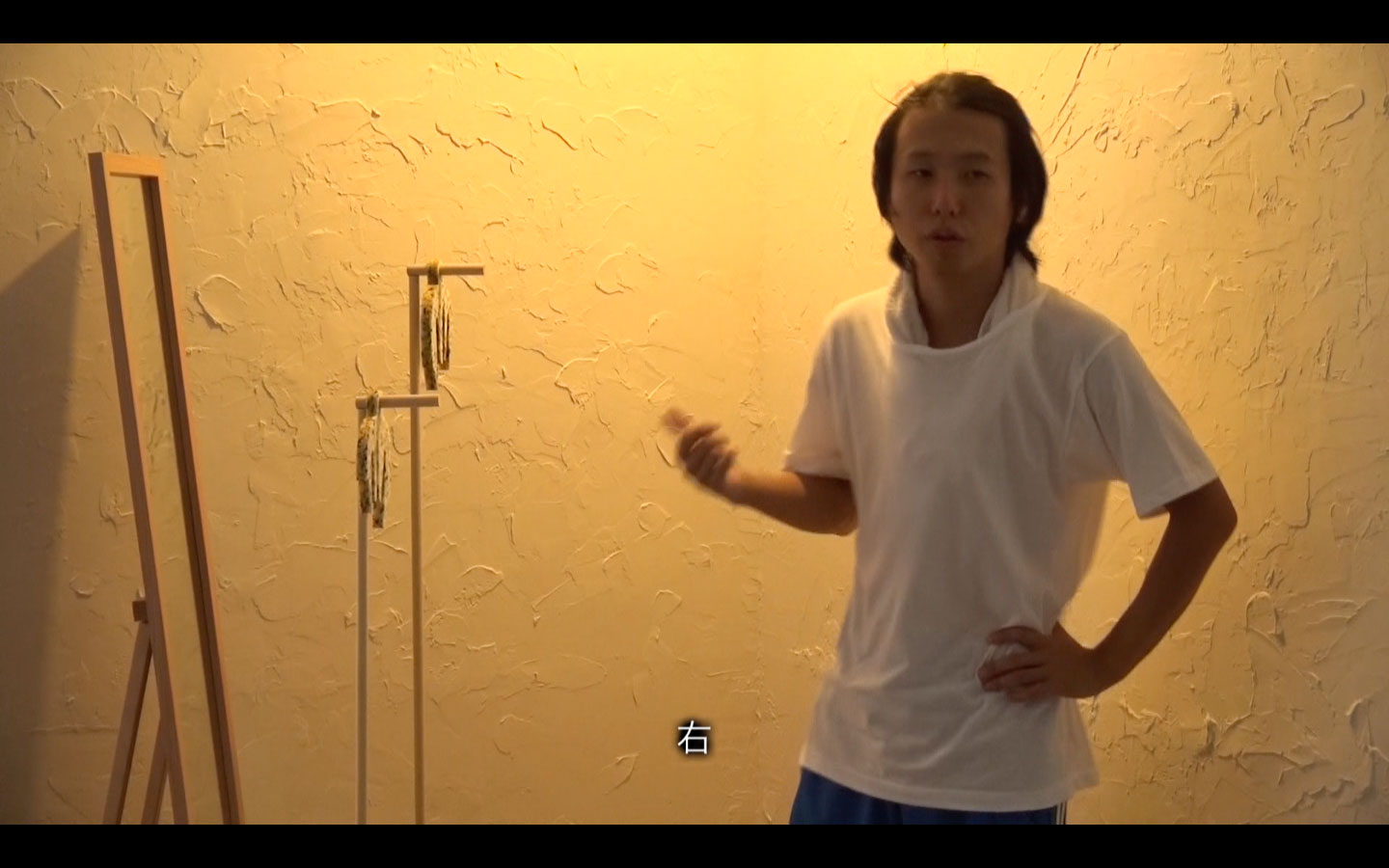 ジェスチャーのパントマイムを練習する過程の映像とパントマイムのジェスチャーを練習する過程の映像。