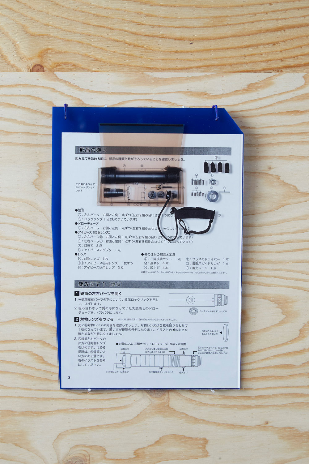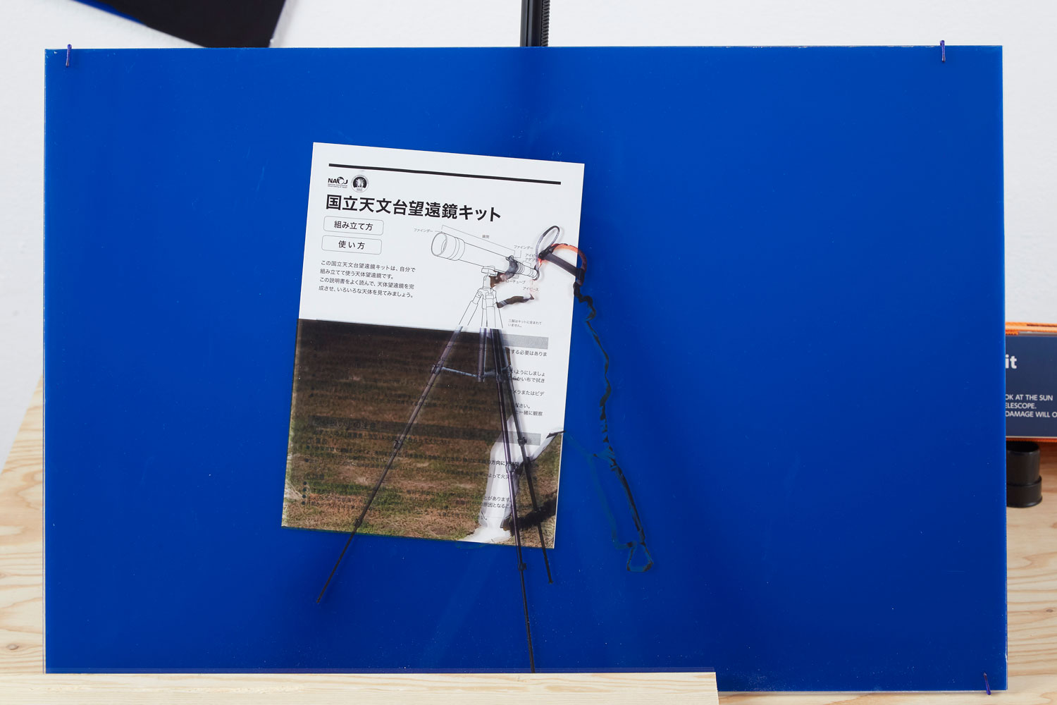望遠鏡をのぞいたときに顔と接触する予定の望遠鏡の部分(接眼レンズ部位)をあらかじめ顔に接触した状態で望遠鏡の完成を目指す。