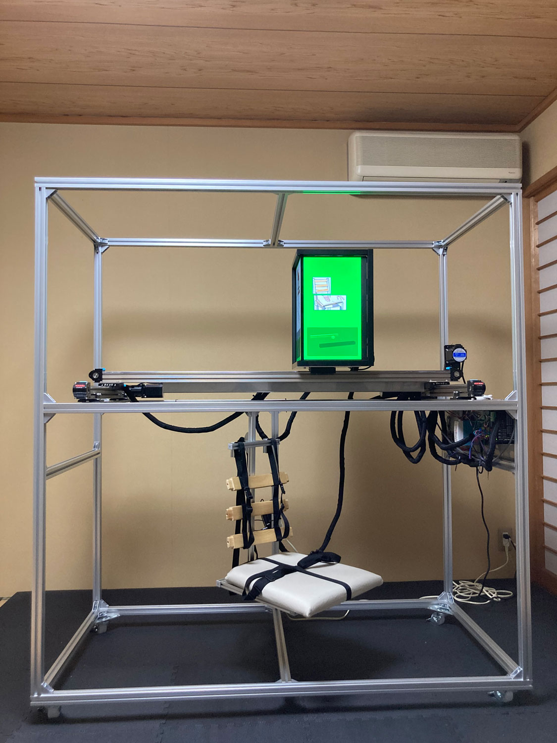 座ったときに体と接触する予定のイスの部分(座面、足置き)をあらかじめ体に接触した状態でイスの完成を目指す。